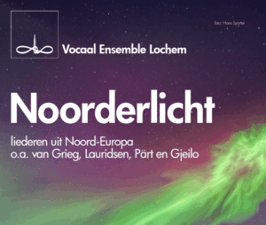 Concert Vocaal Ensemble Lochem Vocaal Ensemble Lochem met Noorderlicht. Liederen uit Noord-Europa o.a. van Grieg, Lauridsen, Pärt en Gjeilo. Noorderlicht Een mysterieus, indrukwekkend natuurverschijnsel van een verstillende schoonheid en uniekheid ...